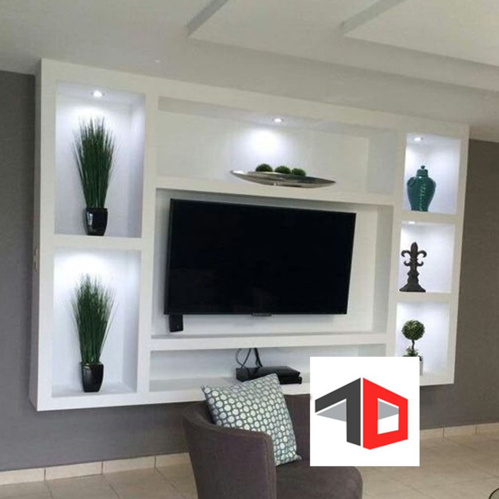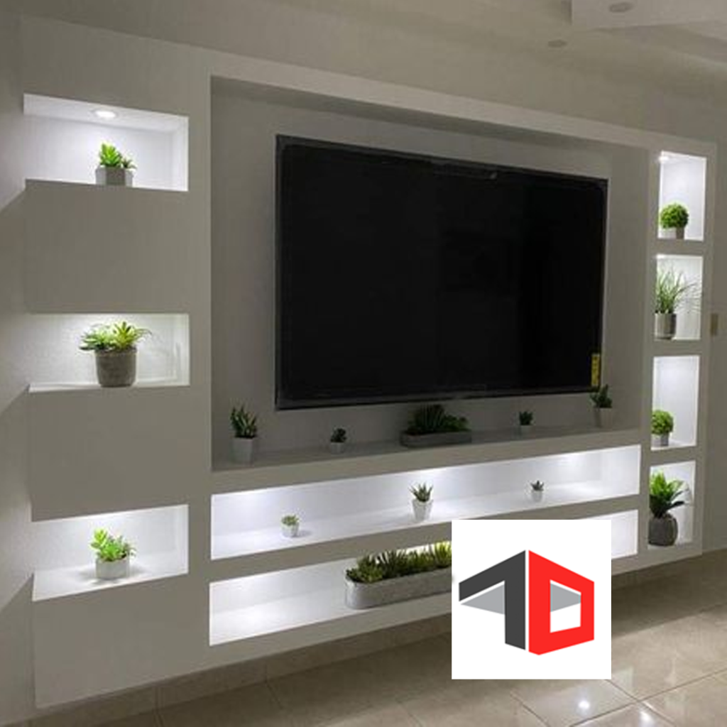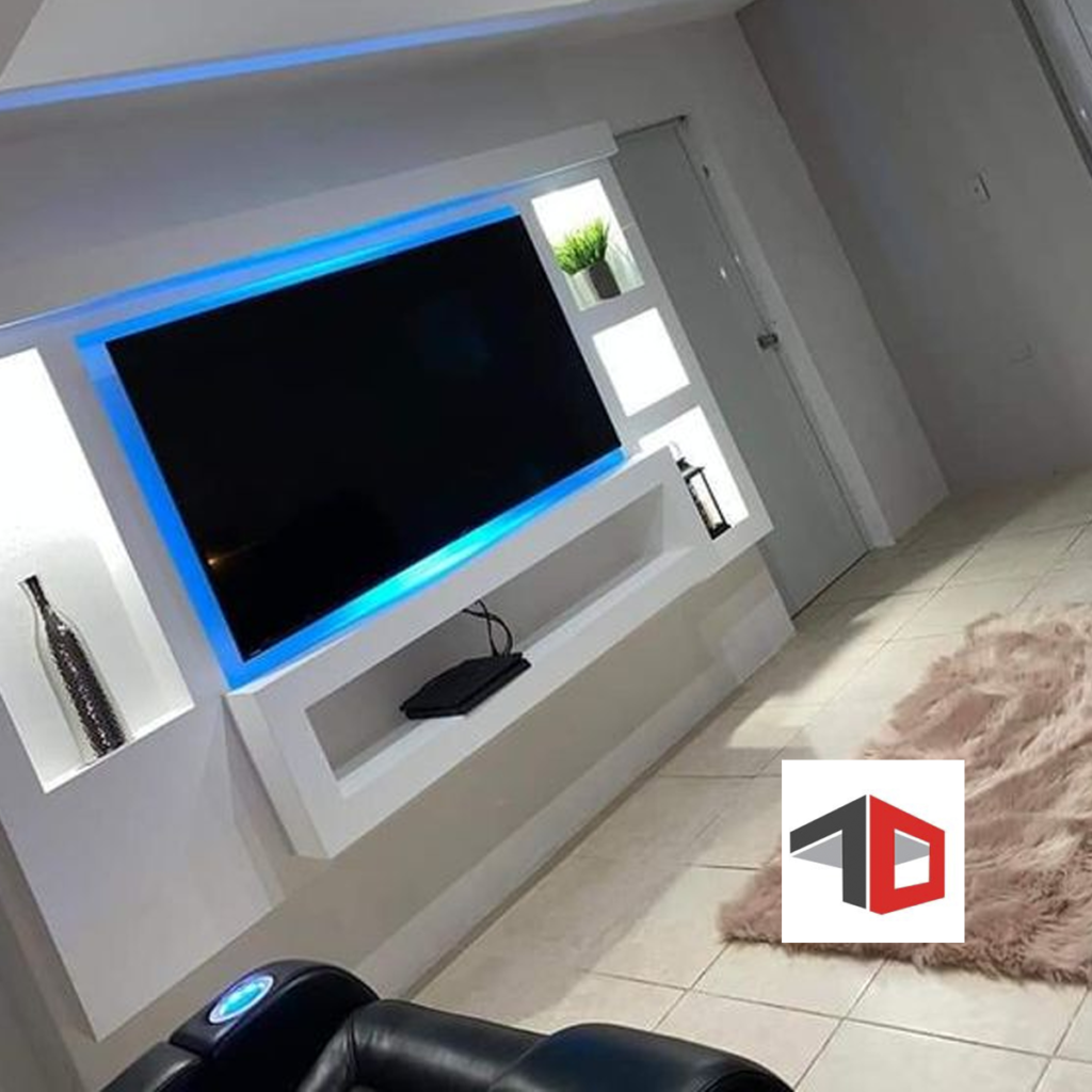 Un centro de televisión de tablaroca puede añadir un aspecto moderno y sofisticado a tu sala de estar.