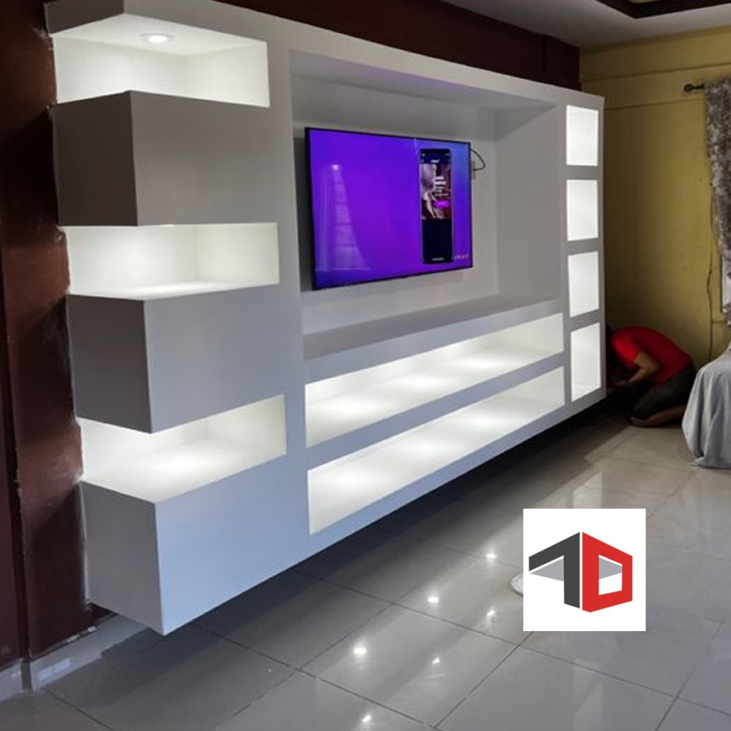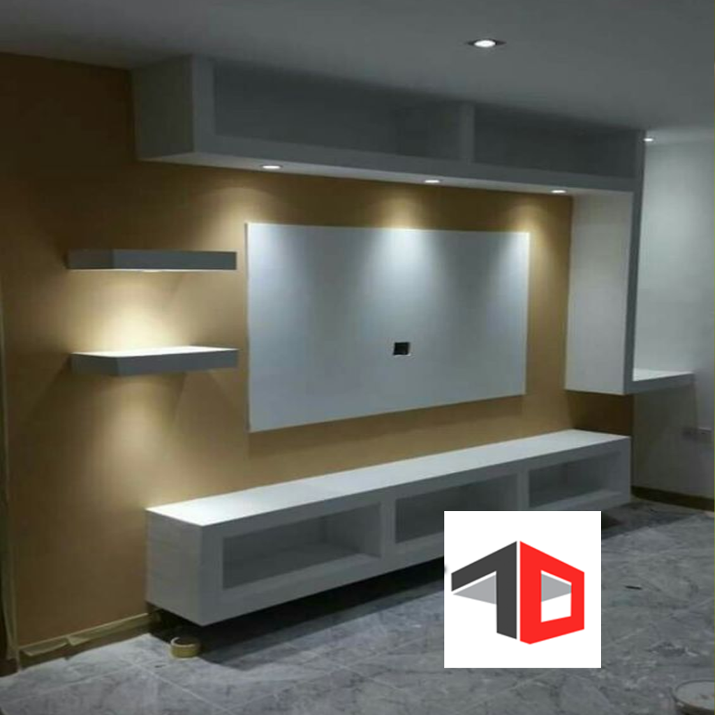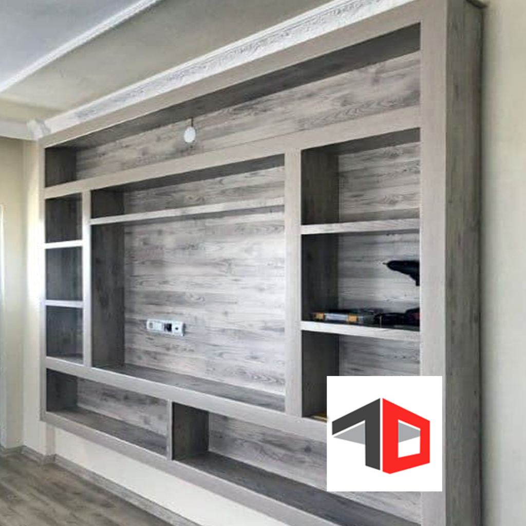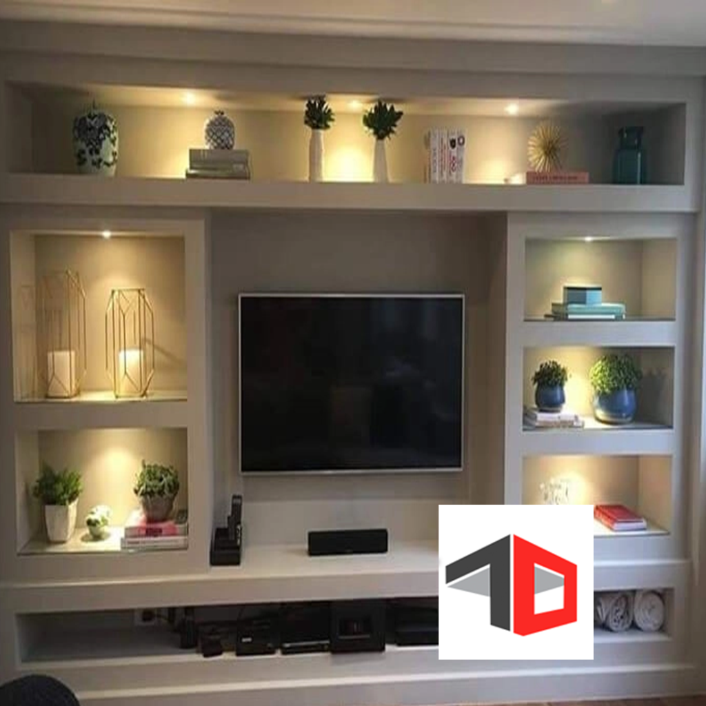 Un centro de televisión de tablaroca puede añadir un aspecto moderno y sofisticado a tu sala de estar.